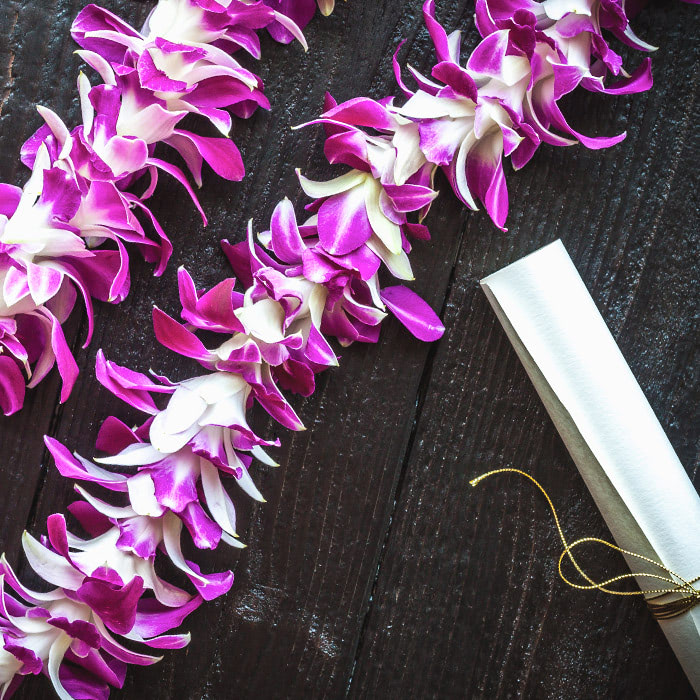 Your graduate might live in an area where it's tradition to wear graduation leis during the ceremony. Often created with purple or white orchids, these leis represent the graduate's departure from one institution, their arrival into the next chapter, and their incredible accomplishments. Giving someone a lei (no matter the occasion) represents friendship, love, respect, honor, and celebration. This graduation tradition is particularly popular in states like Hawaii, California, Washington, and Texas.
